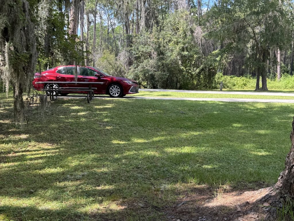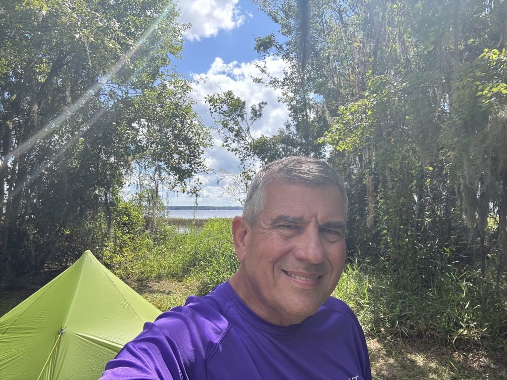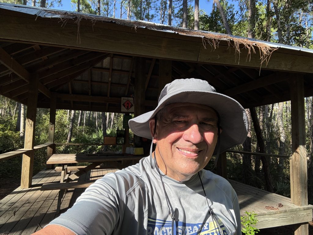 After an amazing day at the Mayo Clinic Jacksonville presenting at their Neuroscience Seminar about Rotary’s CART Program (Coins for Alzheimer’s Research Trust) with Executive Director Tiffany Ervin and meeting with four researchers interested in CART Grants, I traveled about 40 miles west to Ocean Pond Campground, parked my car, and hiked on the Florida Trail to the Osceola Shelter, the oldest shelter on the Florida Trail, then to the West Tower Camp.